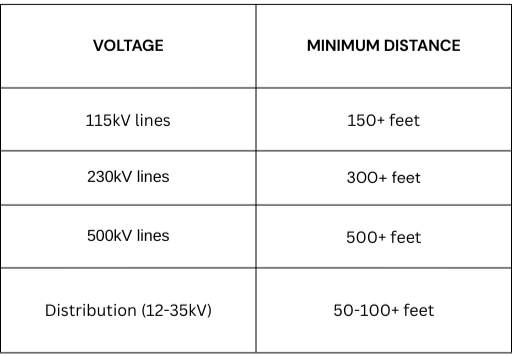 β Power Lines β Call your utility for FREE EMF testing (Minimum 1/10 mile from high-voltage lines)